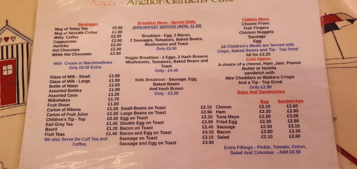 Welcome to **Anchor Gardens Cafe**, a charming café nestled along the beautiful Marine Parade in Great Yarmouth. This quaint spot has become a favorite among locals and visitors alike, offering a delicious and budget-friendly menu that is perfect for enjoying a relaxing meal by the sea.